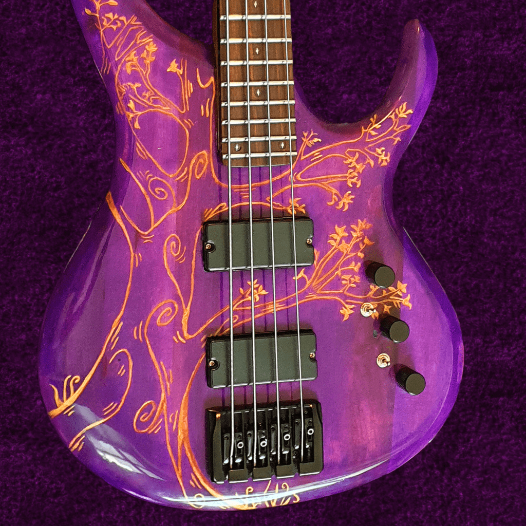 Presenting Hermod, an offset bass that tips it’s hat to the J Bass, with a single piece Black Limba ( Korina ) body, maple 24 fret neck and pear wood fretboard.